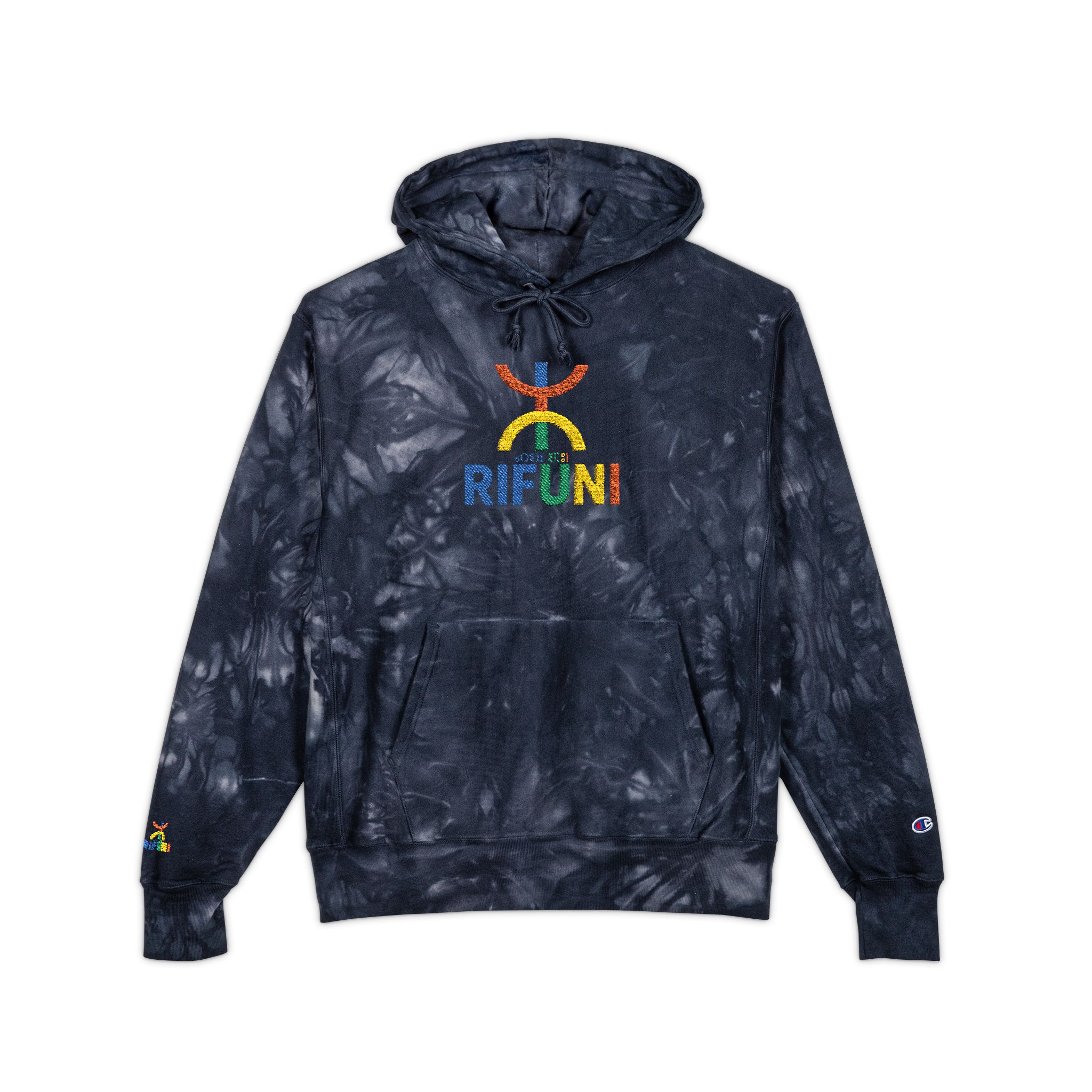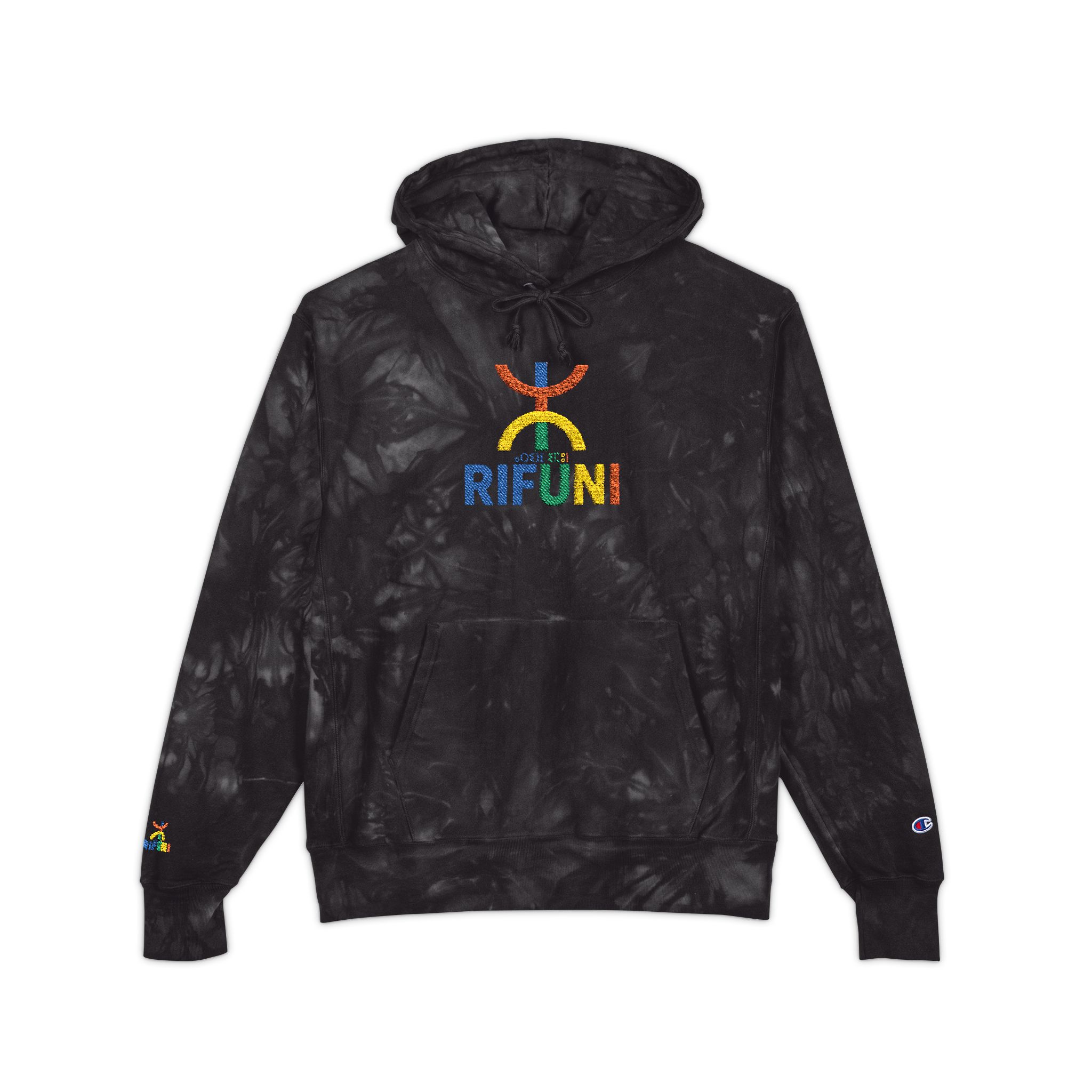This heavyweight hoodie feels like a slow, comforting exhale after a long day — worn-in warmth with a modern, artful edge. The deep charcoal scrunch-tie-dye creates a stormy, lived-in canvas for the embroidered rainbow logo, so each piece reads like wearable street art. Slip into the roomy pouch pocket, cinch the two-ply hood against wind, and let the Reverse Weave® construction hold its shape through washes and seasons. It settles into your rotation effortlessly: casual walks, late-night studio sessions, or layered under a coat when the temperature drops. The textured embroidery and subtle Champion “C” on the sleeve add thoughtful, authentic details that age well with wear.